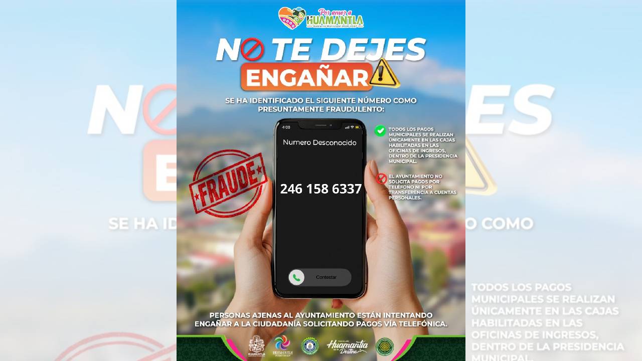 El Gobierno Municipal de Huamantla informa a la ciudadanía que se ha detectado un número telefónico fraudulento que está realizando llamadas a nombre del Ayuntamiento...